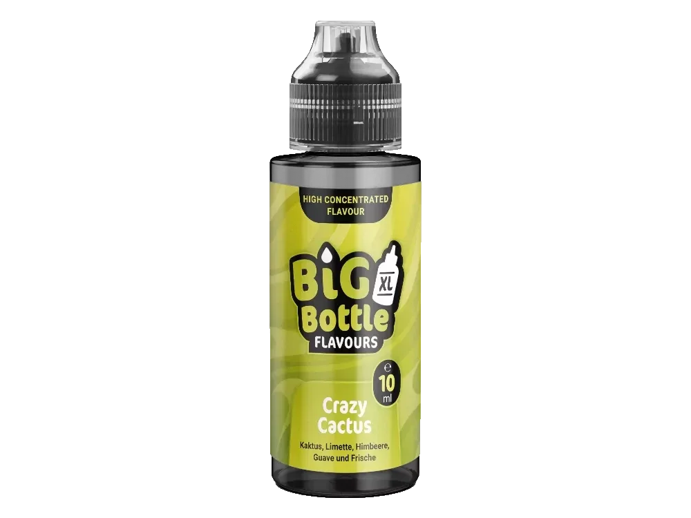 Wenn Sie das Big Bottle Aroma Crazy Cactus mit Ihrer E-Zigarette verdampfen, dann erwartet Sie der Geschmack eines Mixes aus Kaktus, Limette, Himbeere und Guave. Hinzu gesellt sich noch eine frische Note. Das Aroma lässt sich in der Kategorie der Longfill-Aromen einordnen, da Sie eine 120 ml fassende Liquidflasche mit 10 ml Inhalt erhalten. Bitte beachten Sie, dass das Aroma nicht zum puren Dampfen geeignet ist. Dieses ist deutlich höher konzentriert als Liquids.